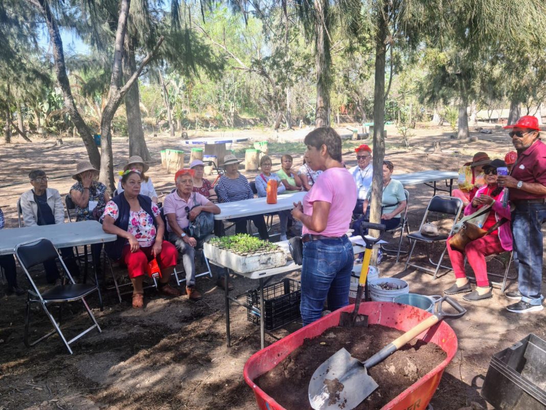 Personal de la Dirección de Gestión Ecológica y Manejo de Residuos instruyeron a adultas y adultos mayores en la plantación de vegetación acorde con el suelo y el clima del Municipio, y los involucró en actividades de reforestación.
