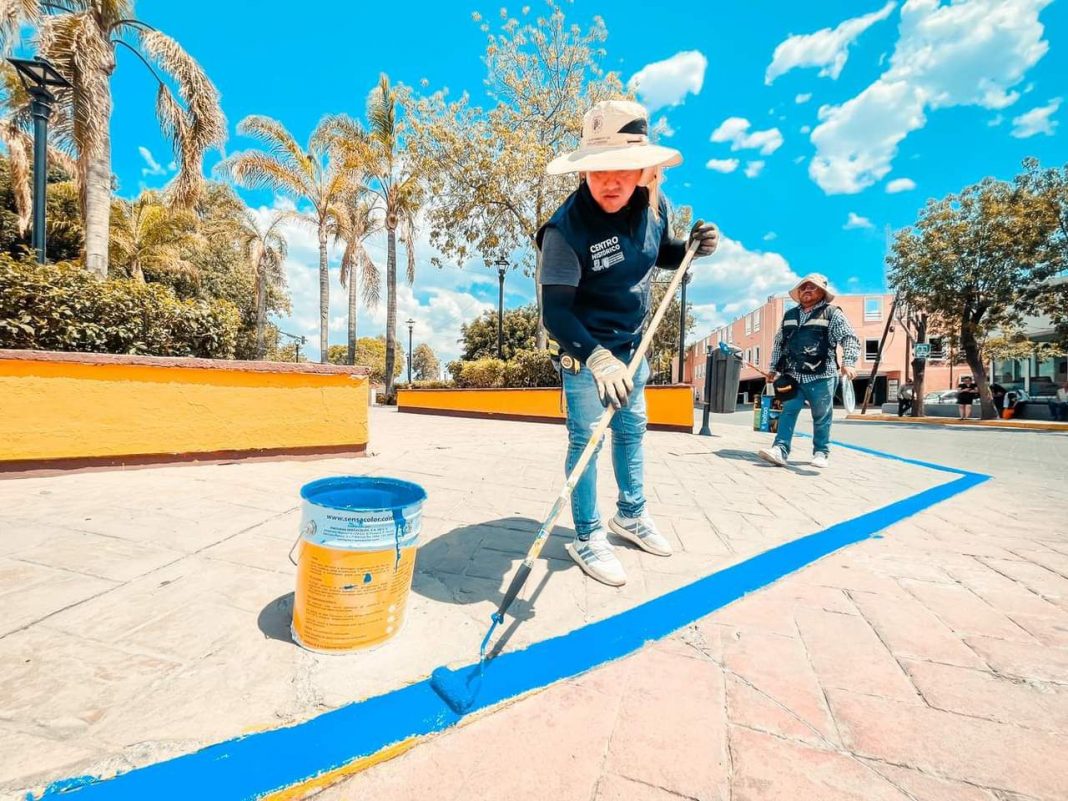 Por instrucciones de la alcaldesa Daniela Cid González, en este espacio se realizó la aplicación de pintura en las jardineras, guarniciones y balizamientos, así como acciones de limpieza de barrido manual y se remarcaron con pintura azul los pasos peatonales para las personas con discapacidad por parte de la cuadrilla de la Unidad de Gestión del Centro Histórico.