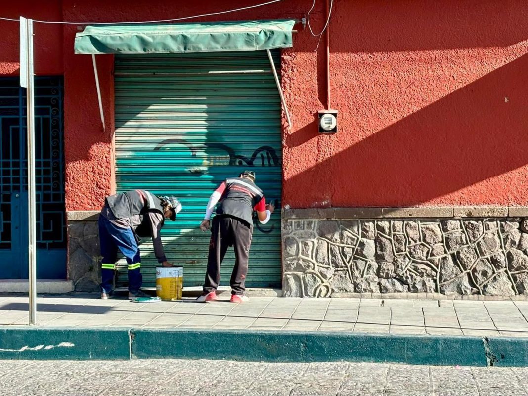 La Unidad de Gestión del Centro Histórico informa que mantiene los trabajos de mantenimiento en el primer cuadro de la ciudad, por lo cual ha sustituido o colocado tapas de registro, limpieza de grafiti, así como de cortinas y espacios públicos.