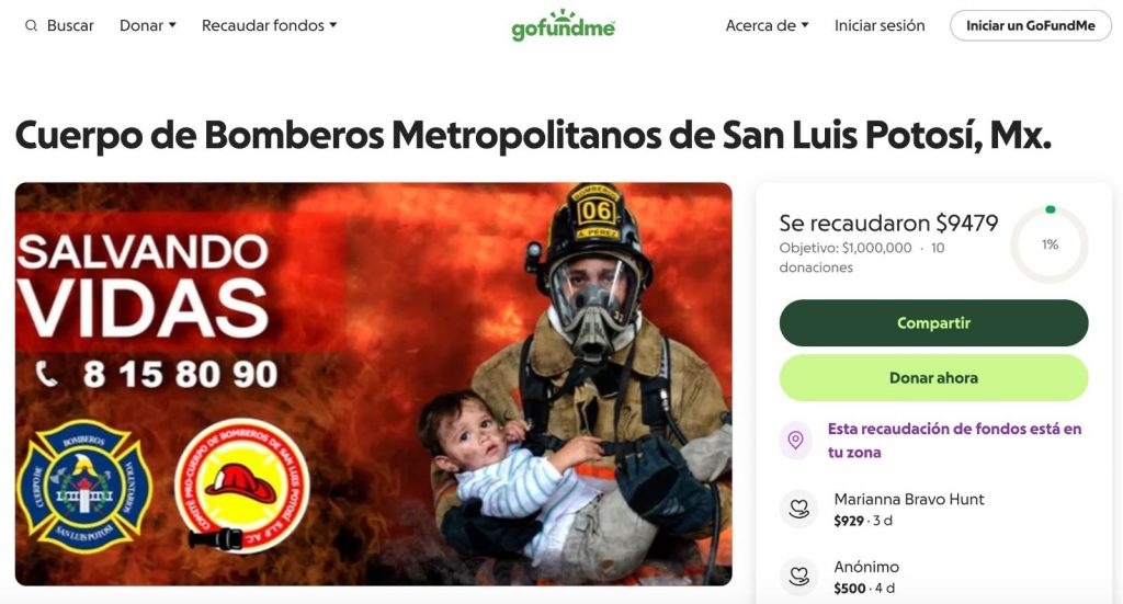 San Luis Potosí, SLP – El comandante Adolfo Benavente Duque y el presidente del patronato José Eduardo Moreno Vellido anunciaron una campaña en GoFundMe para reunir 1 millón de pesos y mejorar al Cuerpo de Bomberos entre septiembre y noviembre de este año