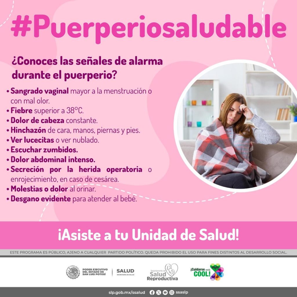Los servicios de salud otorgan consultas en la etapa del puerperio (cuarentena) en la cual se identifican señales de alarma, ante la manifestación de algún síntoma físico o psicológico, como dolores, sangrados, pérdida de apetito, tristeza, irritabilidad o dificultad para vincularse con el bebé. La elección informada de un método de planificación familiar, así como el ejercicio de las maternidades y paternidades responsables realizando el tamiz metabólico entre los primeros 3 y 5 días de vida y el tamiz auditivo a sus bebés.
