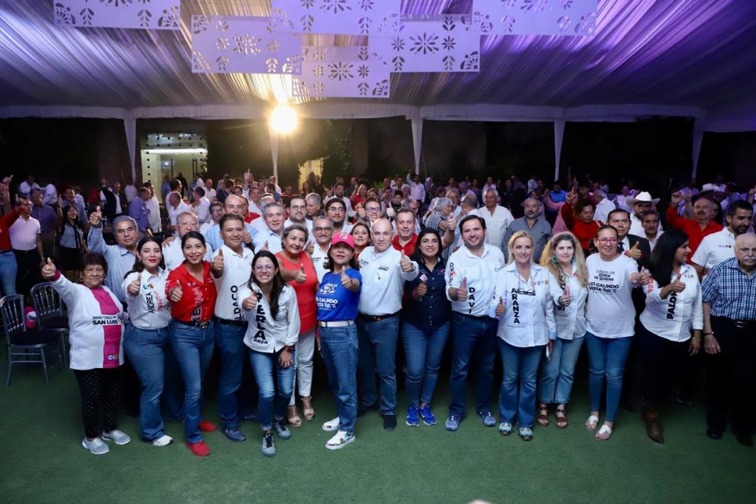 El candidato a la presidencia municipal reunió a más de mil liderazgos del tricolor, entre ellos exalcaldes y exrectores de la UASLP; además de personajes que ya no militan en el partido, como “Calolo” y el morenista Pedro Olvera, quienes expresaron su respaldo a la continuidad de Enrique Galindo en la alcaldía de la capital.