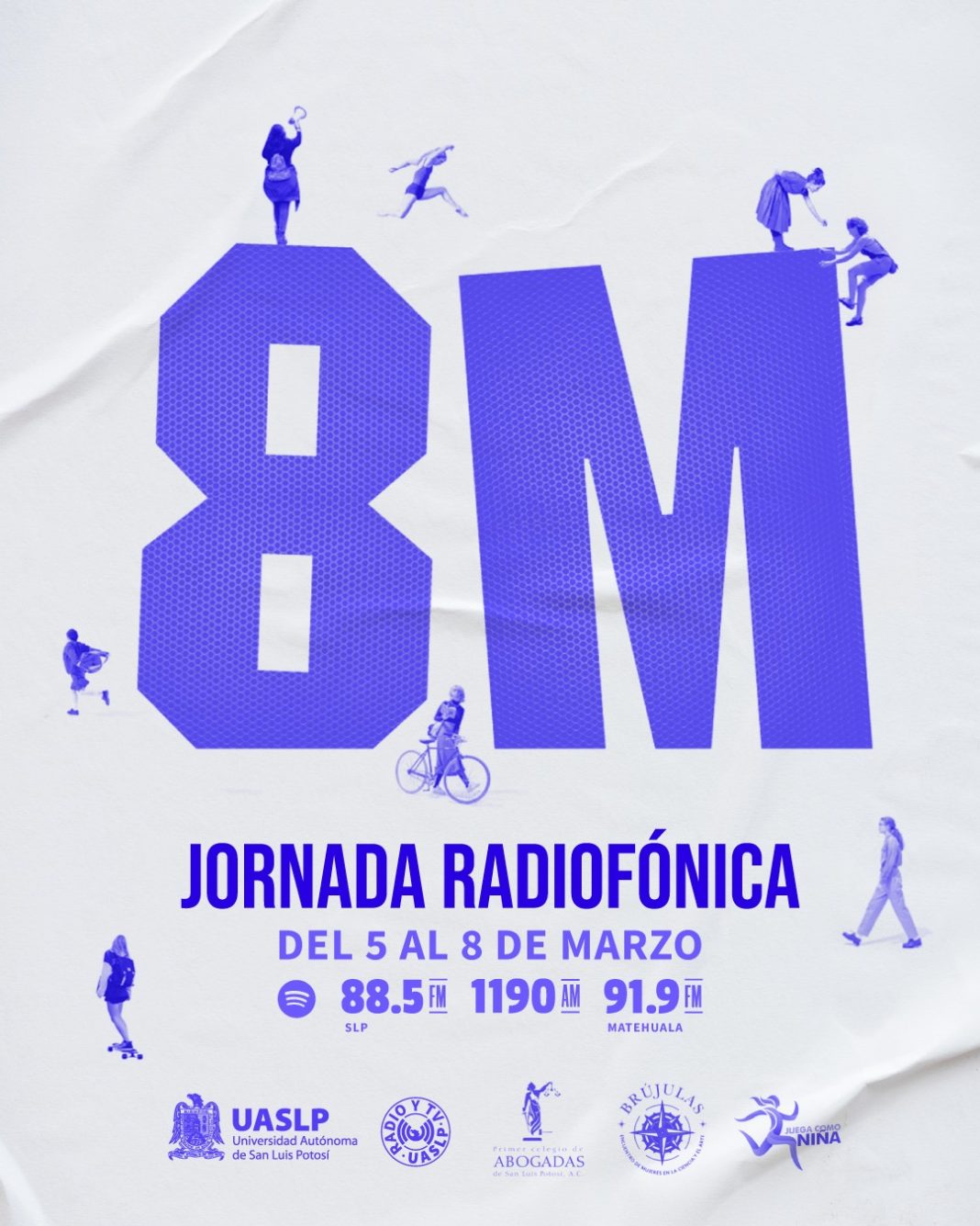 Como parte de las actividades que se gestan desde el Comité Institucional de la UASLP, en el marco de la conmemoración del Día Internacional de la Mujer; la Dirección de Radio y Televisión Universitaria llevará a cabo la 4ta Jornada Radiofónica del 8M 2024.