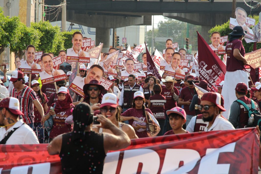 Numeroso contingente de alrededor de mil 500 ciudadanos de colonias y comunidades del municipio se volcó este domingo en favor del candidato de Morena a la presidencia municipal, Juan Carlos Velázquez Pérez en la Caminata por la Libertad de Soledad de Graciano Sánchez
