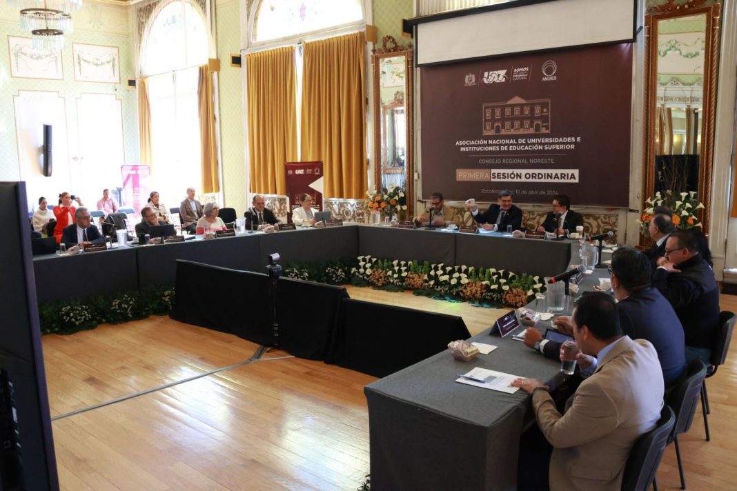 El doctor Alejandro Javier Zermeño Guerra, rector de la Universidad Autónoma de San Luis Potosí (UASLP), reafirmó su compromiso con la mejora continua e innovación educativa, al participar en la Primera Sesión Ordinaria del Consejo Regional Noreste de la Asociación Nacional de Universidades e Instituciones de Educación Superior (ANUIES), realizada este miércoles 10 de abril en Zacatecas.