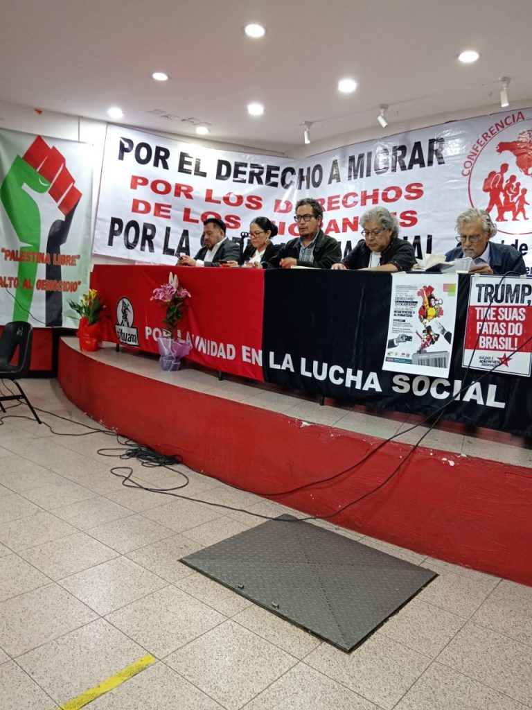 En el evento también se dio un respaldo total al pueblo de Palestina, y se señaló que la única fuerza capaz de detener esta embestida, está en la unión del pueblo y de la clase trabajadora, mediante su capacidad de manifestación y de protesta, para enfrentar el nuevo panorama mundial, solicitando la unión de los gobiernos progresistas del continente americano, del Presidente de Brasil, Luiz Inácio Lula da Silva, de Colombia, Gustavo Petro, de México, Claudia Sheinbaum Pardo, de Honduras, Xiomara Castro y de Uruguay, Yamandú Orsi, para que en bloque detengan tales acciones oligopólicas que atentan contra la dignidad humana; la conferencia se realizó el pasado 27 de septiembre.